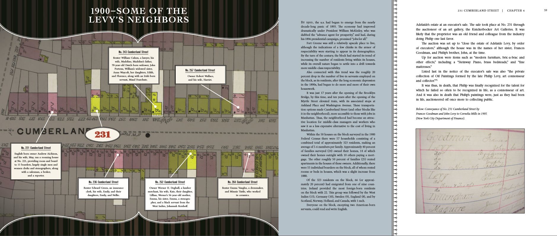 Here is a brief timeline of the history of this single landmarked property, matched up with “spreads” from the book: