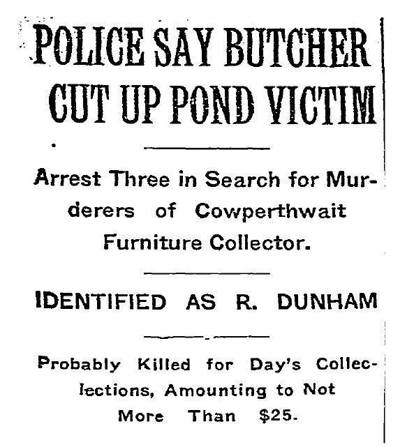An installment collector for the Cowperthwait Furniture Company, Dunham had been collecting installment payments in Park Slope when he went missing for about two weeks.