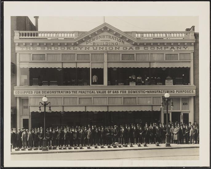 That year, the Brooklyn Union Gas Company was pushing their gas appliances not only to heads of households, but they were also targeting “Progressive Business Men” to whom they claimed were attending the “special demonstration of gas industrial appliances at the gas industrial show rooms” at 108-10-12 Livingston Street, known as their “Gas Demonstration Building.”