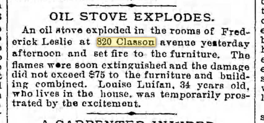 “An oil stove exploded in the rooms of Frederick Leslie…yesterday afternoon and set fire to the furniture,” noted the Brooklyn Daily Eagle. “The flames were soon extinguished and the damage did not exceed $75 to the furniture and building combined.”