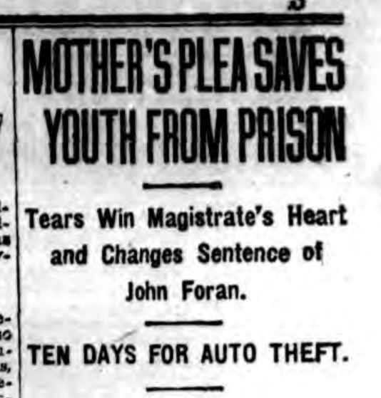 “Please give him another chance,” she begged the court, as the story was relayed by the Brooklyn Standard Union in 1922. “Can’t you give him a lighter punishment? I will do my best to get him work and see that he goes right.”