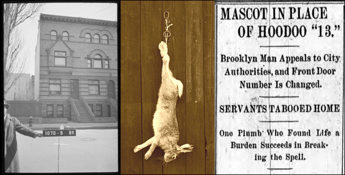 Ed.’s Note – If your house number was “13,” would you hang a rabbit’s foot on your door, cover up the unlucky number, change it? These were all suggestions by the Commissioner of the Street Numbering Bureau to Brooklyn citizen Henry Brooks Plumb when Plumb arrived in the commissioner’s office hoping to change the integer attached to his door – No. 13 Polhemus Place.