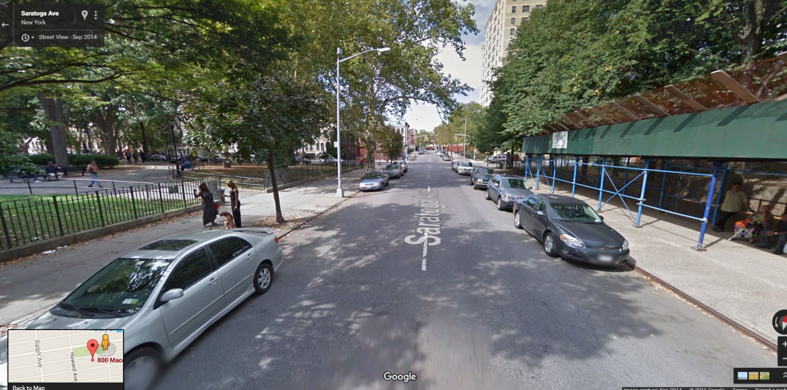 We’d never seen this 1899 picture before – the cobblestones of Saratoga Avenue – taken from Macon Street looking north. To the left you see the gates of the 3-year old Saratoga Square Park and to the right, what was known then as Saratoga Field. A few years before this shot was taken, you would have seen the circus and the various Wild West shows of the time camping out on these two blocks, attracting crowds of people from miles around to the neighborhood.