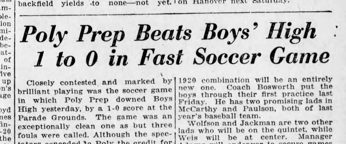 The first mention of “soccer foot ball” in the Brooklyn Daily Eagle, was in 1899 in a story about an Orange Free State club traveling to the U.S. for an exposition.