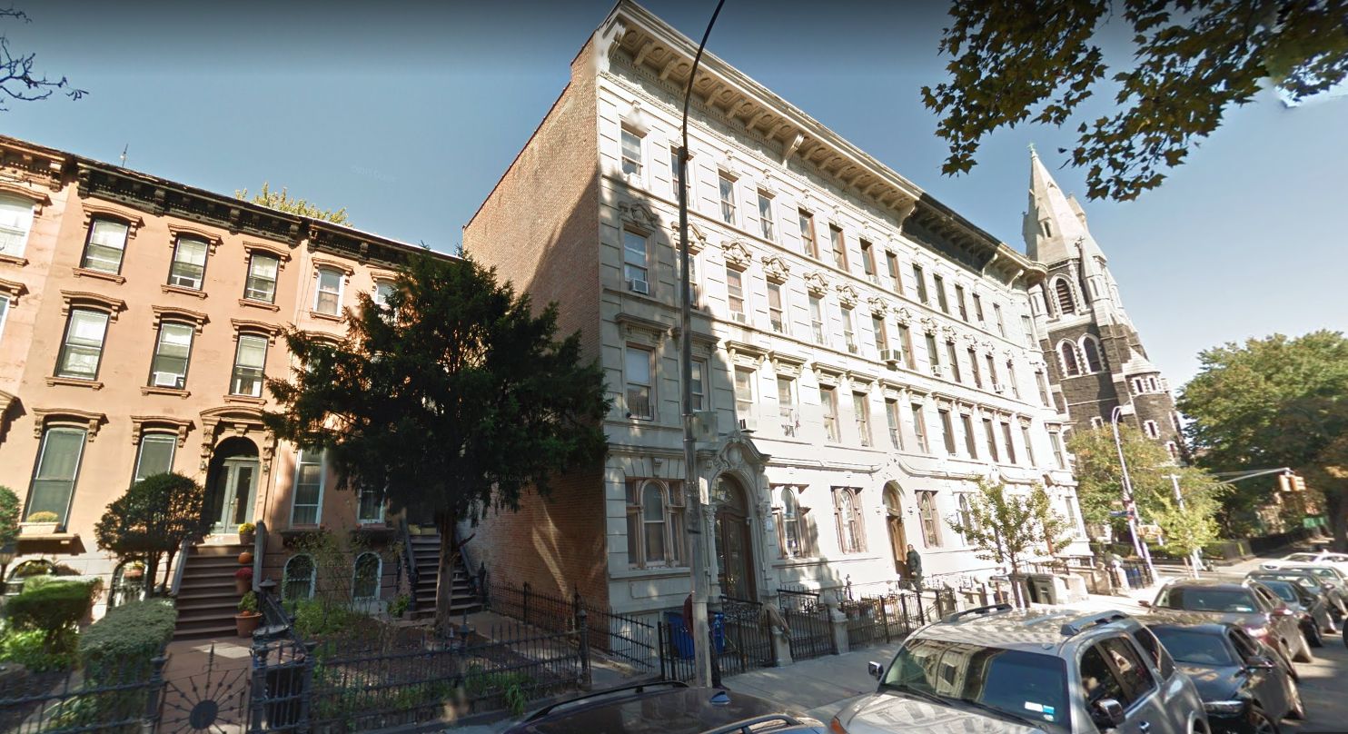 Constructed by Cozine of Indiana limestone, and designed in the French Beaux Arts manner by architect William Debus, these four apartment houses, according to the Stuyvesant Heights Historic District Designation Report, featured a “bold continuous cornice and a curved bay marking the transition to the Throop Avenue side,” which gave these houses “the aspect of a single structure.”