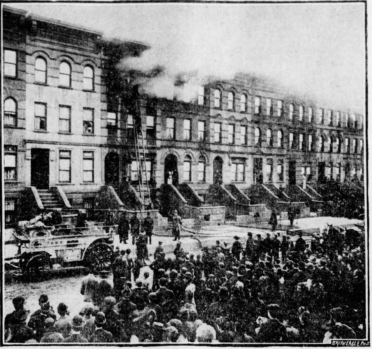 “The building, being situated in the Park Slope residence district, the fire caused much excitement for the time being and the work of the fire fighters was often applauded.”