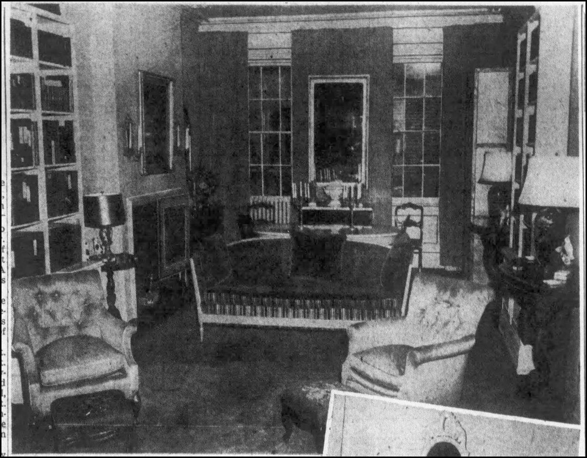 Evidently this 35 by 16-foot area had at one time been two rooms for there are two fullsize fireplaces. For any other family this would have entailed additional expense for double fireplace equipment. To Mr. and Mrs. Brackett it just meant that each could use the andirons, screens and candle sconces which they had had in their separate apartments before they were married.